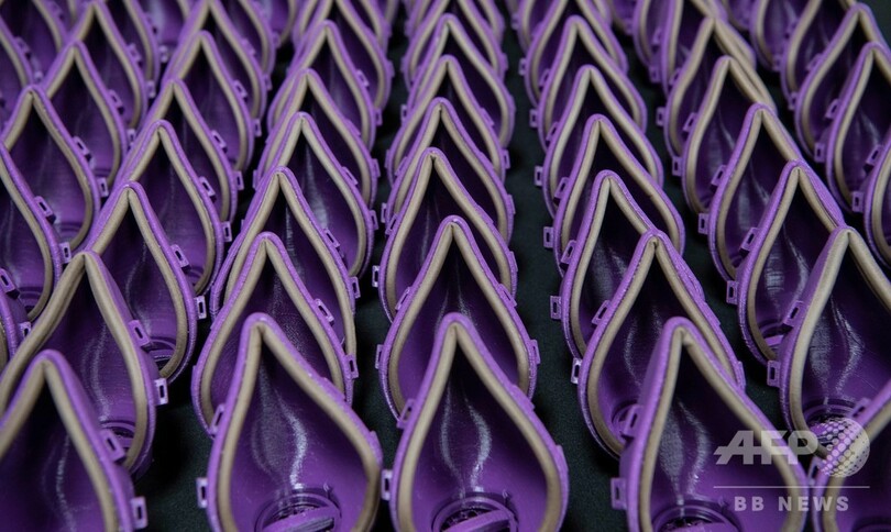 【5月19日 AFP】チリ・サンティアゴの印刷工場でつくられた、銅を含んだフィルター付きの3Dマスク。新型コロナウイルスの感染防止のため、バクテリア、ウイルス、真菌を寄せ付けないなどの効果がある銅のナノ粒子を用いたという。(c)AFP