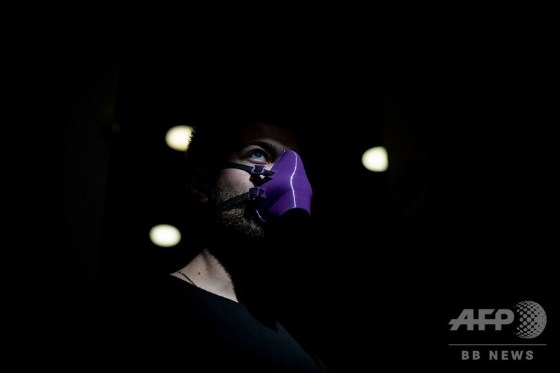 【5月19日 AFP】チリ・サンティアゴの印刷工場でつくられた、銅を含んだフィルター付きの3Dマスク。新型コロナウイルスの感染防止のため、バクテリア、ウイルス、真菌を寄せ付けないなどの効果がある銅のナノ粒子を用いたという。(c)AFP