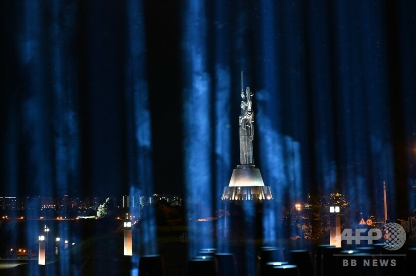 【5月20日 AFP】ウクライナ・キエフで行われた「文化の隔離を止めよう(Stop Cultural Quarantine)」というライトアップによる抗議活動で、夜空に照らし出された「祖国の母(Motherland)の像」。