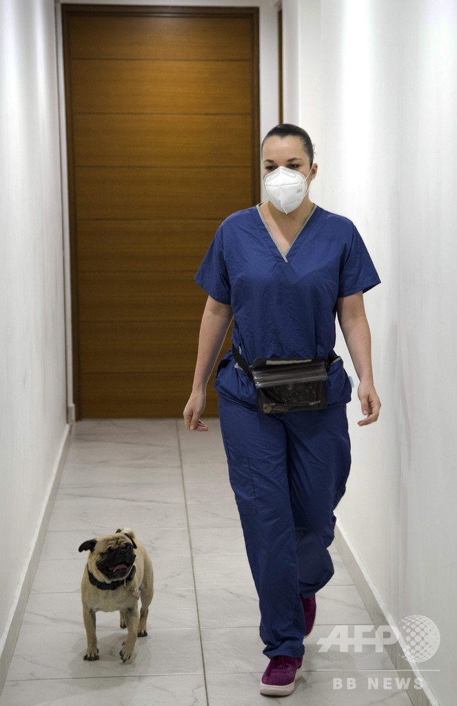 【5月31日 AFP】メキシコ・メキシコ市の病院では、新型コロナウイルスと闘う医療従事者らのストレスを和らげるため、セラピー犬の「ハーリー(3歳)」が奮闘中だ。片目の不自由なハーリーは、小さな黄色のブーツにゴーグルと防護服を着用し、毎日2時間、医療従事者らを楽しませるために大忙しだという。