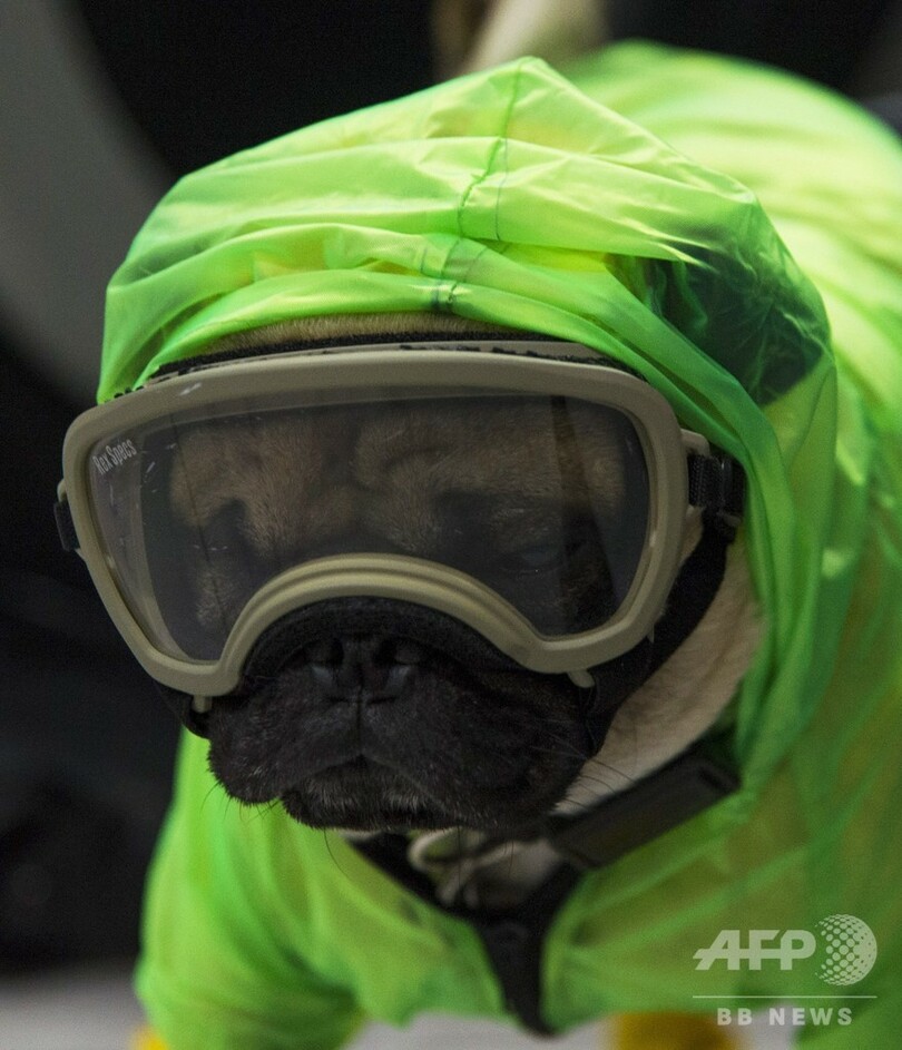 【5月31日 AFP】メキシコ・メキシコ市の病院では、新型コロナウイルスと闘う医療従事者らのストレスを和らげるため、セラピー犬の「ハーリー(3歳)」が奮闘中だ。片目の不自由なハーリーは、小さな黄色のブーツにゴーグルと防護服を着用し、毎日2時間、医療従事者らを楽しませるために大忙しだという。