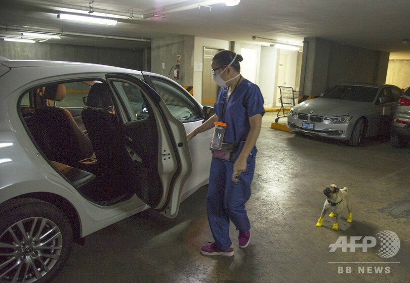 【5月31日 AFP】メキシコ・メキシコ市の病院では、新型コロナウイルスと闘う医療従事者らのストレスを和らげるため、セラピー犬の「ハーリー(3歳)」が奮闘中だ。片目の不自由なハーリーは、小さな黄色のブーツにゴーグルと防護服を着用し、毎日2時間、医療従事者らを楽しませるために大忙しだという。