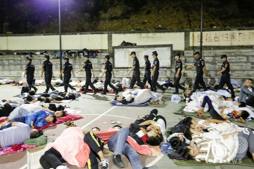 中国版ツイッター(Twitter)「微博(ウェイボー、Weibo)」に投稿された動画には、店舗の棚に置かれていた箱が落ち、買い物客が避難する様子や、教室にいた生徒らが一斉に机の下に逃げ込み、教科書で頭を覆う様子などが捉えられている。