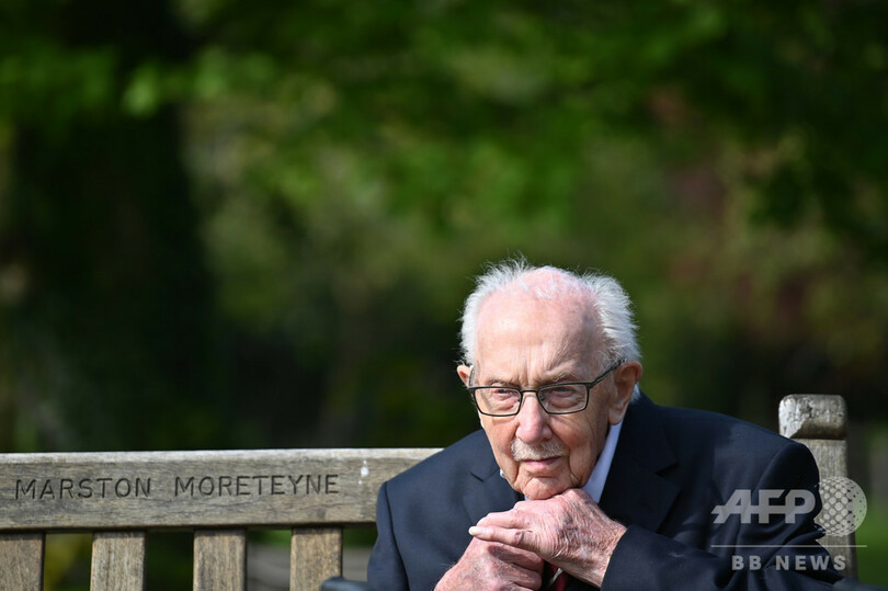 第2次世界大戦(World War II)で従軍した「トム大尉(Captain Tom)」ことムーアさんは先月、国民保健サービス(NHS)の医療従事者やボランティアらのために寄付を募ろうと、自宅の庭を歩行器を使って100周(1周25メートル)することに挑戦。