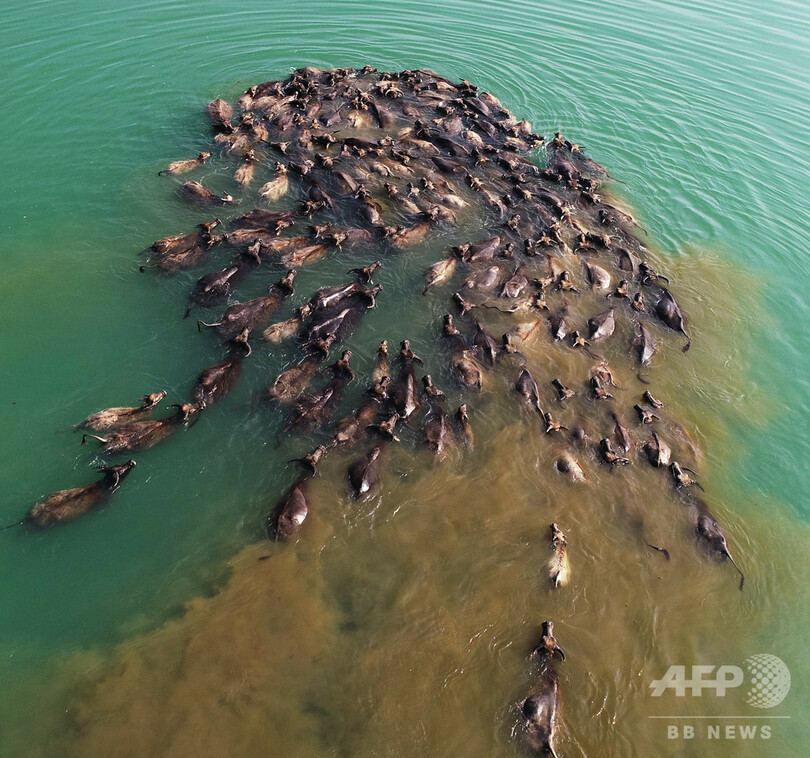 【5月20日 CNS】中国・四川省(Sichuan)南充市(Nanchong)蓬安県(Peng’an)で19日、100頭を超える水牛が嘉陵江(Jialing River)を泳いで渡っていた。毎年4月から10月の間、この地の嘉陵江では「百牛渡河」の珍しい光景が見られ、多くの観光客が訪れ、地元の観光業の発展を後押ししている。(c)CNS/JCM/AFPBB News