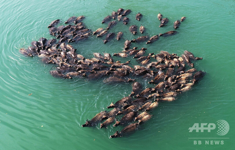 【5月20日 CNS】中国・四川省(Sichuan)南充市(Nanchong)蓬安県(Peng’an)で19日、100頭を超える水牛が嘉陵江(Jialing River)を泳いで渡っていた。毎年4月から10月の間、この地の嘉陵江では「百牛渡河」の珍しい光景が見られ、多くの観光客が訪れ、地元の観光業の発展を後押ししている。(c)CNS/JCM/AFPBB News
