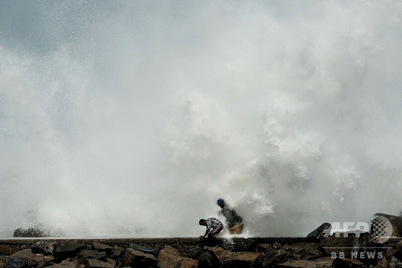 猛烈な風に加え、数メートルの高潮も予想されている。高潮は、沿岸から内陸へ数キロの範囲まで被害をもたらす恐れがあり、サイクロンや台風、ハリケーンで死者が出る主な要因となっている。(c)AFP
