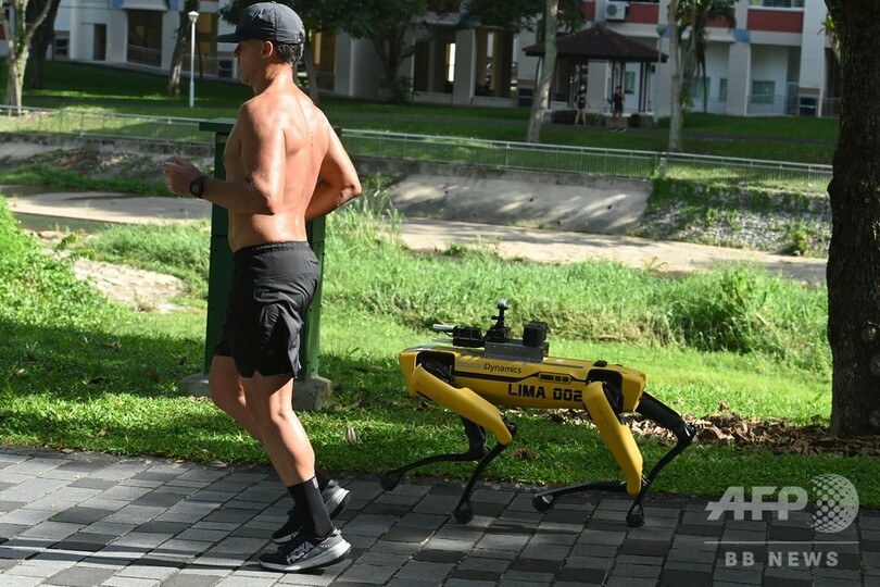 【5月21日 AFP】シンガポールの公園で、新型コロナウイルス感染拡大防止のため人々がソーシャル・ディスタンシング(対人距離の確保)を守るよう、黄色いロボット犬「スポット(Spot)」がパトロールに乗り出している。