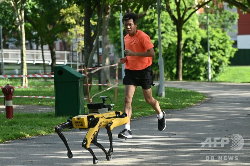 【5月21日 AFP】シンガポールの公園で、新型コロナウイルス感染拡大防止のため人々がソーシャル・ディスタンシング(対人距離の確保)を守るよう、黄色いロボット犬「スポット(Spot)」がパトロールに乗り出している。