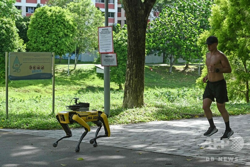 【5月21日 AFP】シンガポールの公園で、新型コロナウイルス感染拡大防止のため人々がソーシャル・ディスタンシング(対人距離の確保)を守るよう、黄色いロボット犬「スポット(Spot)」がパトロールに乗り出している。