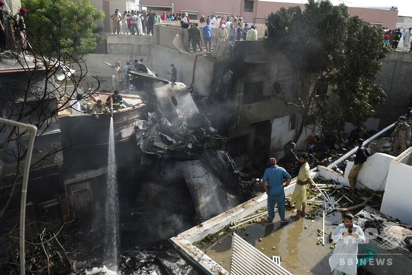パキスタン旅客機が住宅地に墜落 約100人搭乗、80遺体収容