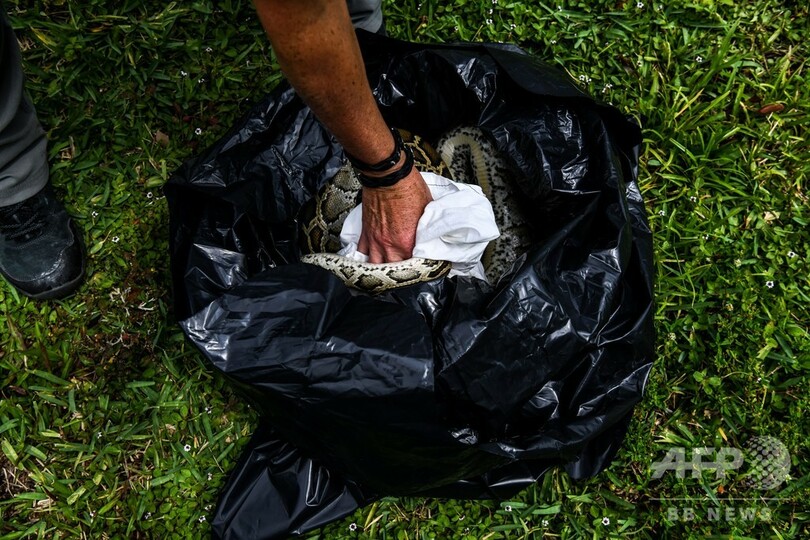 スネークハンターのエイミー・サイウィ(Amy Siewe)氏は、「ニシキヘビは全長5.5~6メートルになり、ネズミからシカまであらゆるものを食べる」と言う。