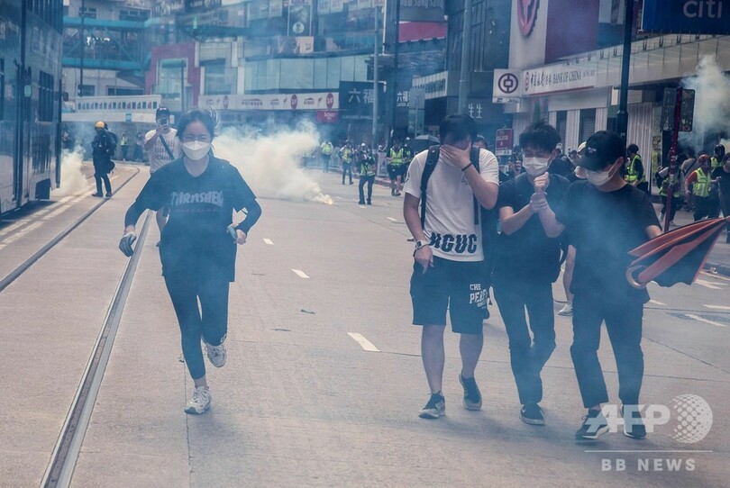 【5月24日 AFP】(更新、写真追加)香港で24日、中国が先週提案した「国家安全法」に抗議するため、大勢の民主派のデモ参加者らが集結したところ、警察が催涙弾と放水銃を参加者に向けて発射した。ここ数か月で最も激しい衝突となった。