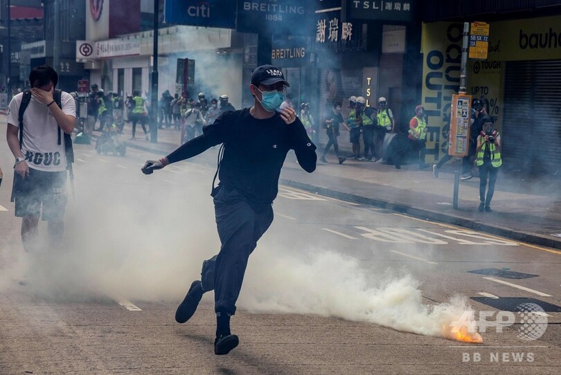 【5月24日 AFP】(更新、写真追加)香港で24日、中国が先週提案した「国家安全法」に抗議するため、大勢の民主派のデモ参加者らが集結したところ、警察が催涙弾と放水銃を参加者に向けて発射した。ここ数か月で最も激しい衝突となった。
