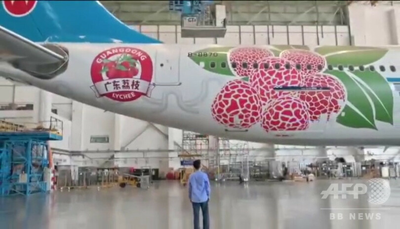 【5月30日 CNS】中国・広東省(Guangdong)の広州白雲国際空港(Guangzhou Baiyun International Airport)で20日、機体にライチのデザインを施した中国南方航空(China Southern Airlines)の「広東ライチ号」が初フライトをした。中国南方航空と広東省農業農村庁が合同で企画し、特産品のライチをPRした。