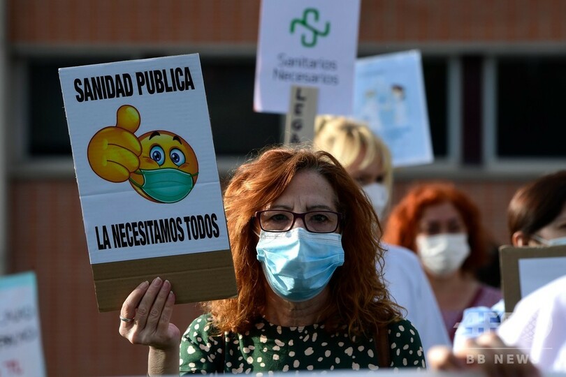 コロナと闘うスペインの医療従事者、防護用品の不足訴えデモ