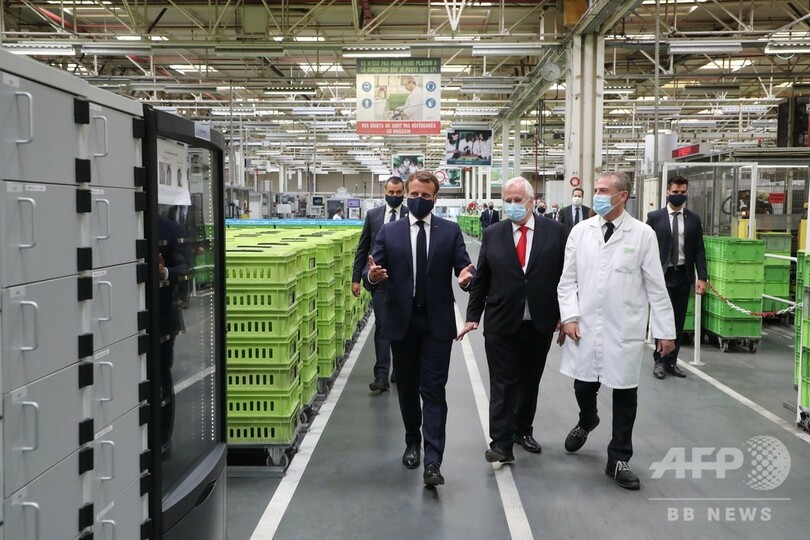 マクロン氏はまた、経営状態が深刻な仏自動車大手のルノー(Renault)が、充電可能な自動車産業向けの電池の生産で、仏独のプロジェクトに参加することで合意したとも発表した。(c)AFP