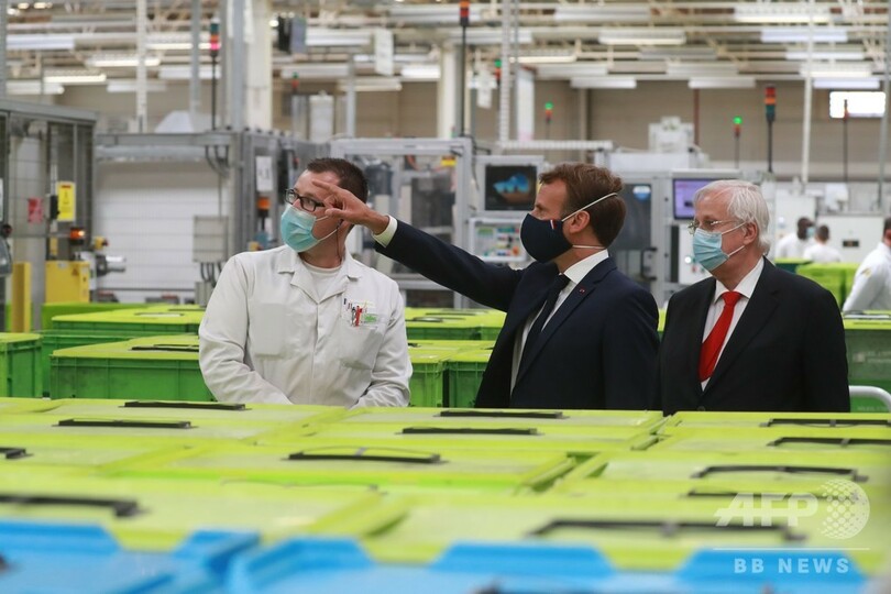 マクロン氏はまた、経営状態が深刻な仏自動車大手のルノー(Renault)が、充電可能な自動車産業向けの電池の生産で、仏独のプロジェクトに参加することで合意したとも発表した。(c)AFP