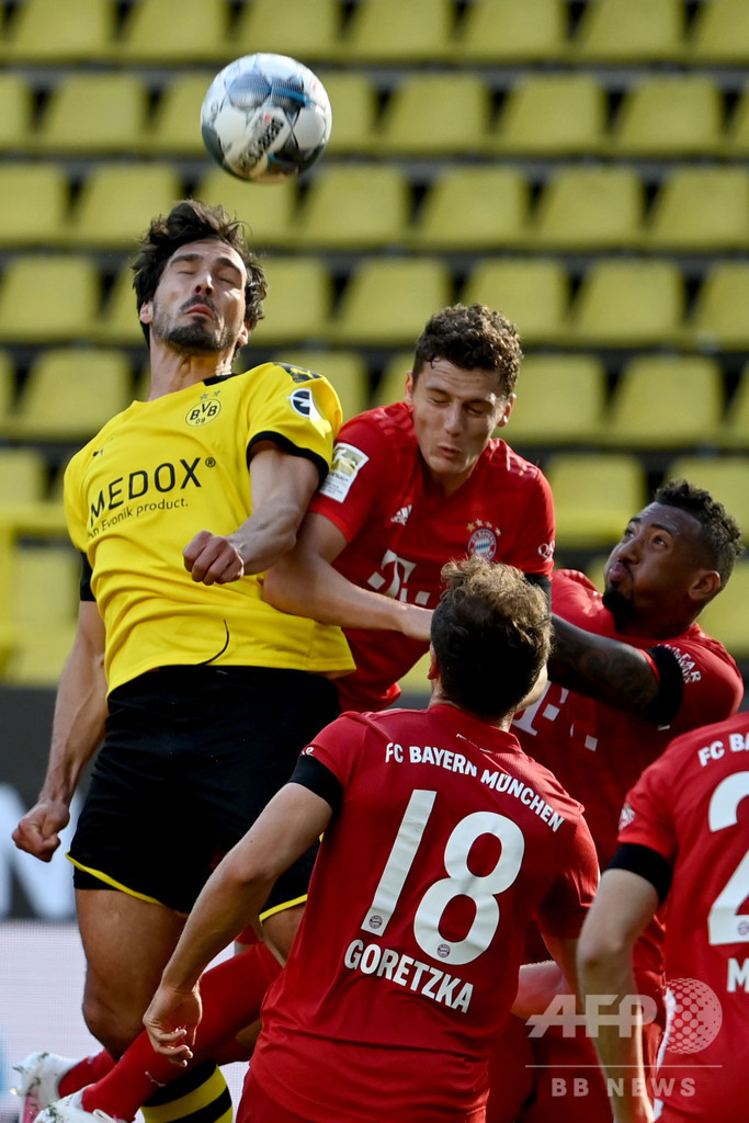 【5月27日 AFP】19-20ドイツ・ブンデスリーガ1部は26日、第28節が行われ、バイエルン・ミュンヘン(Bayern Munich)はヨシュア・キミッヒ(Joshua Kimmich)の得点が決勝点となり、アウェーで2位ボルシア・ドルトムント(Borussia Dortmund)に1-0で勝利した。残りあと6試合のバイエルンは2位との勝ち点差を7にまで広げ、8連覇に向けて大きな一歩を踏み出した。