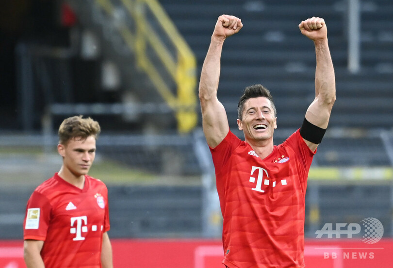 【5月27日 AFP】19-20ドイツ・ブンデスリーガ1部は26日、第28節が行われ、バイエルン・ミュンヘン(Bayern Munich)はヨシュア・キミッヒ(Joshua Kimmich)の得点が決勝点となり、アウェーで2位ボルシア・ドルトムント(Borussia Dortmund)に1-0で勝利した。残りあと6試合のバイエルンは2位との勝ち点差を7にまで広げ、8連覇に向けて大きな一歩を踏み出した。