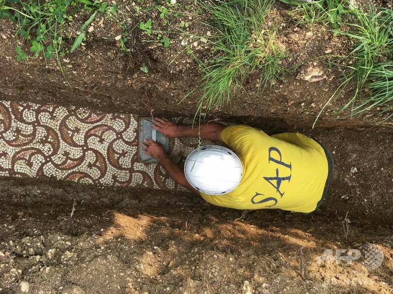 古代ローマのモザイク画発見、1世紀前から調査 イタリア北部