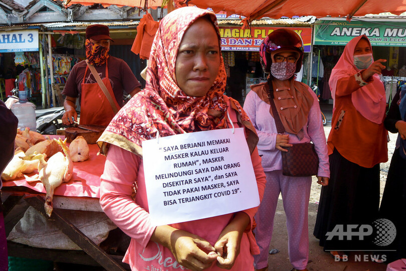 【5月29日 AFP】ソーシャル・ディスタンシング(対人距離の確保)を守らない者にはコーラン(イスラム教の聖典)を復唱させ、「幽霊屋敷」に住まわせ、ソーシャルメディアで辱めを受けさせる──。新型コロナウイルスの感染拡大が続くインドネシアでは、地方当局が規則に違反した者を辱めたり、つるし上げたりするなど、独自の対策を導入し始めた。