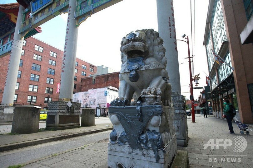 バンクーバーで125年の歴史を誇るチャイナタウンでは先週、ゲートに設置された獅子の石像に新型コロナウイルスを意味する「Covid」や「China(中国)」の文字が落書きされた。付近にある中国系文化施設も最近、窓が割られる被害を受けた。チャイナタウンでは現在、監視カメラを搭載した警察車両が巡回している。