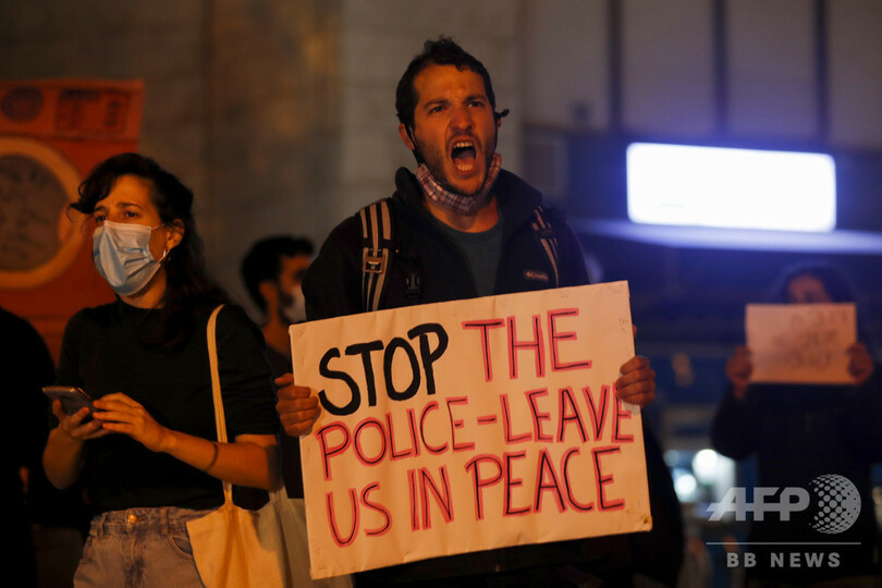 デモ参加者らは、ヘブライ語や英語で「警察の暴力が殺した」「イヤドに正義を」「パレスチナ人の命は大切」などと書かれたパネルを掲げた。新型コロナウイルスの感染予防のため、多くのデモ参加者はマスクを着用していた。(c)AFP