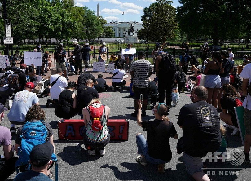 ホワイトハウス前には機動隊が列をつくり、近くの公園に結集したデモ隊と対峙(たいじ)していたが、現場のAFP記者によると、夜になって警察とデモ隊の間で小競り合いが発生。警察が催涙弾や催涙スプレー、閃光(せんこう)発音筒を用いてデモ隊を解散させようと試みている。デモ隊の中には付近で火をたいたり、建物に落書きをしたりしていた者たちがいた。