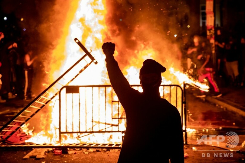 ホワイトハウス前には機動隊が列をつくり、近くの公園に結集したデモ隊と対峙(たいじ)していたが、現場のAFP記者によると、夜になって警察とデモ隊の間で小競り合いが発生。警察が催涙弾や催涙スプレー、閃光(せんこう)発音筒を用いてデモ隊を解散させようと試みている。デモ隊の中には付近で火をたいたり、建物に落書きをしたりしていた者たちがいた。