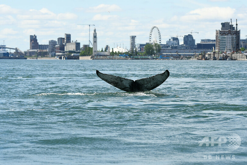 クジラが現れたのはセントローレンス(St Lawrence)川で、5月30日以降、モントリオールのビル群を背景に泳ぐ姿が確認されている。