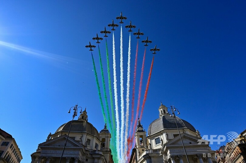 伊空軍、共和国建国記念日で展示飛行、ローマの空に三色の煙たなびく