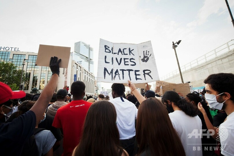参加者の多くは、米国で黒人男性のジョージ・フロイド(George Floyd)さんが警察の拘束下で死亡したことをめぐって発生している抗議行動で使用されている「Black Lives Matter(黒人の命は大切)」や「息ができない(警官に押さえつけられたフロイドさんの言葉)」などのスローガンを叫んでいた。