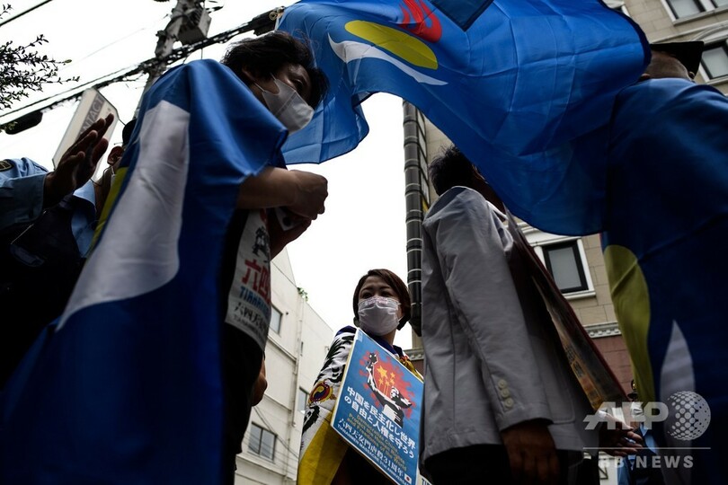 【6月4日 AFP】中国が民主化を求める学生らの運動を武力で鎮圧した天安門(Tiananmen)事件から31年を迎える4日、東京・港区の中国大使館前で民主派活動家らのグループが抗議デモを行った。