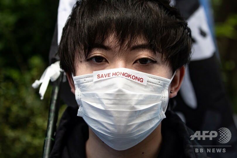 参加者の中には香港の旗や「香港に自由を、今こそ革命を」と書かれた旗を持つ人の姿も見られた。(c)AFP