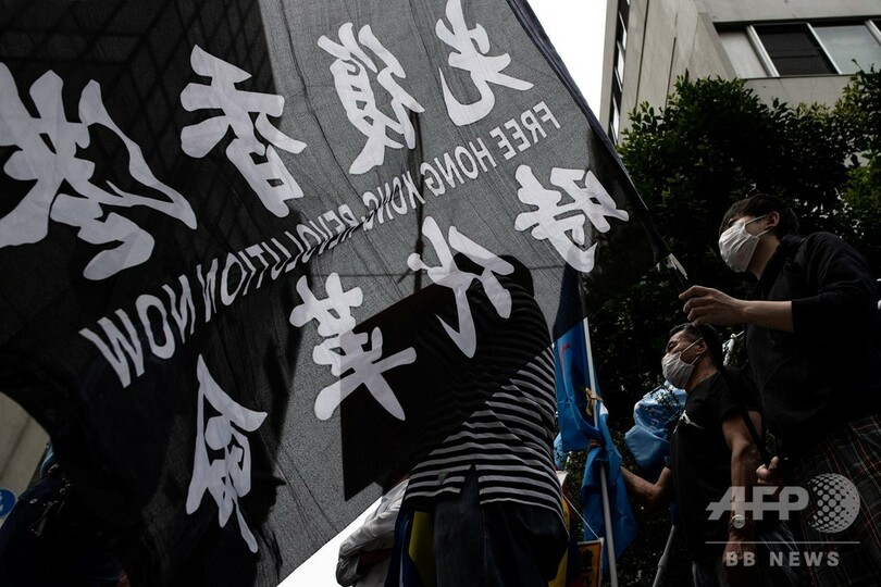 【6月4日 AFP】中国が民主化を求める学生らの運動を武力で鎮圧した天安門(Tiananmen)事件から31年を迎える4日、東京・港区の中国大使館前で民主派活動家らのグループが抗議デモを行った。