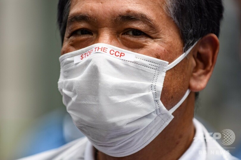 【6月4日 AFP】中国が民主化を求める学生らの運動を武力で鎮圧した天安門(Tiananmen)事件から31年を迎える4日、東京・港区の中国大使館前で民主派活動家らのグループが抗議デモを行った。