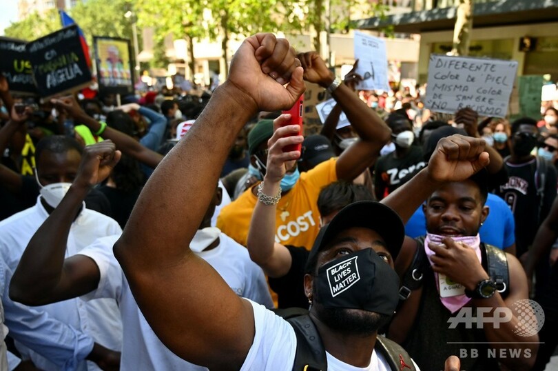 スペイン・マドリードでは米大使館前に数千人が集まり、フロイドさんが拘束時に発していた「息ができない」という言葉を叫びながら人種差別撤廃を訴えた。