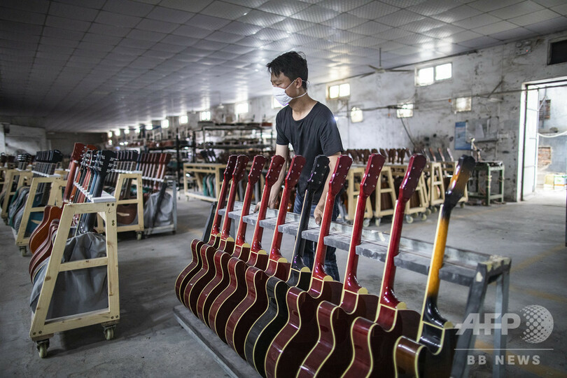 昨秋行われたネット通販「天猫双11」セールで、このギター工場のオンライン専売店は24時間で3万5000本のギターを売り上げた実績がある。今年の「天猫618」では、6月1日当日だけで、ある楽器専門店のギター類売り上げは昨年同期比317%増となり、全体の売り上げも昨年同期比21.45%増となったという。(c)CNS/JCM/AFPBB News