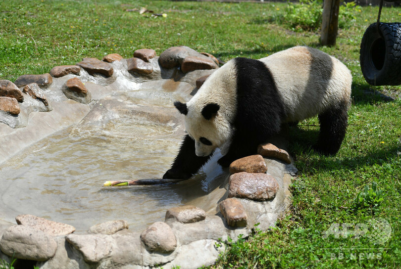水遊びをして暑さをしのぐパンダ 中国・長春市