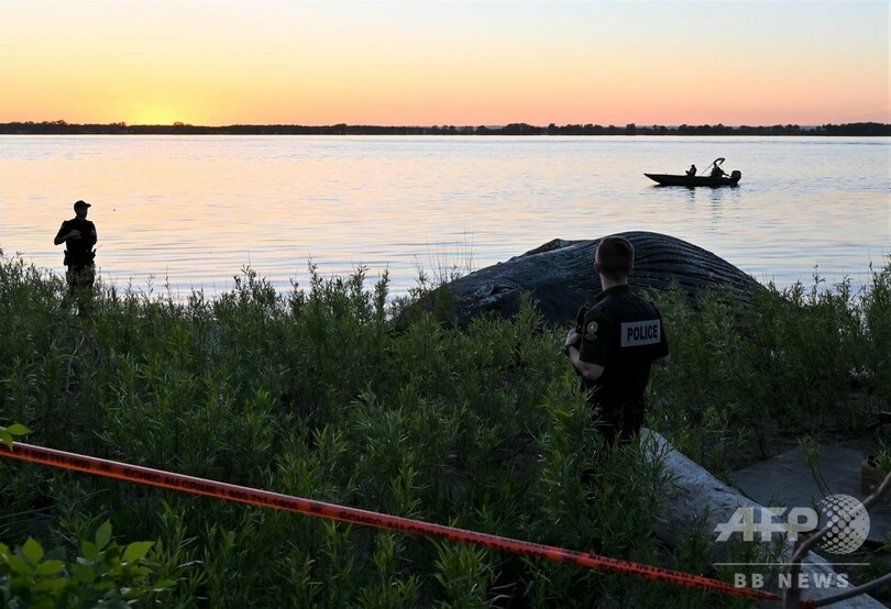 当局は、死骸をモントリオールから80キロ東のソレル(Sorel)までけん引し、巨大クレーンで岸に引き上げた。ムラー氏は「数日前にモントリオール近郊で確認されたクジラの可能性が高い」と述べている。