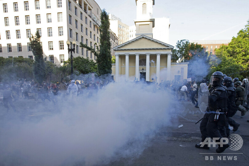 トランプ氏は今月1日、ホワイトハウスから徒歩で政権幹部らを伴って聖ヨハネ聖公会教会(St John's Episcopal Church)前まで移動し、聖書を手に写真撮影を実施。その際、ホワイトハウスと教会の間に位置するラファイエット公園(Lafayette Park)では、人種差別に抗議する平和的なデモを行っていた数百人が、警察や州兵によって発煙筒や催涙ガスに似たペッパー弾が使われ強制排除された。