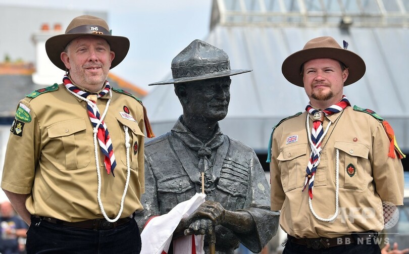 「スカウト運動」創始者の銅像守れ、撤去発表で住民ら集まる