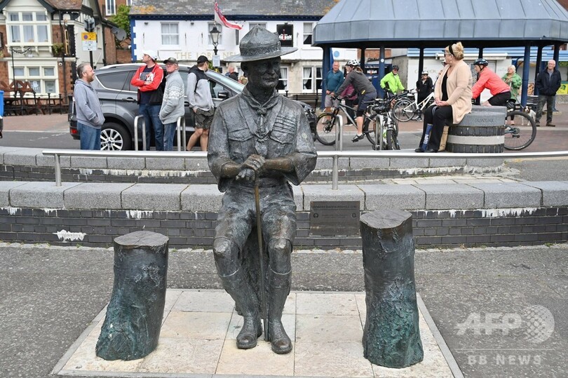 【6月12日 AFP】英イングランド南部の港町ボーンマス(Bournemouth)で11日、「スカウト運動」の創始者でナチス・ドイツ(Nazi)の支持者でもあったロバート・ベーデンパウエル(Robert Baden-Powell)卿の銅像を撤去する市の方針に抗議する人々が港にある銅像の元に集まり、卿の功績をたたえた。