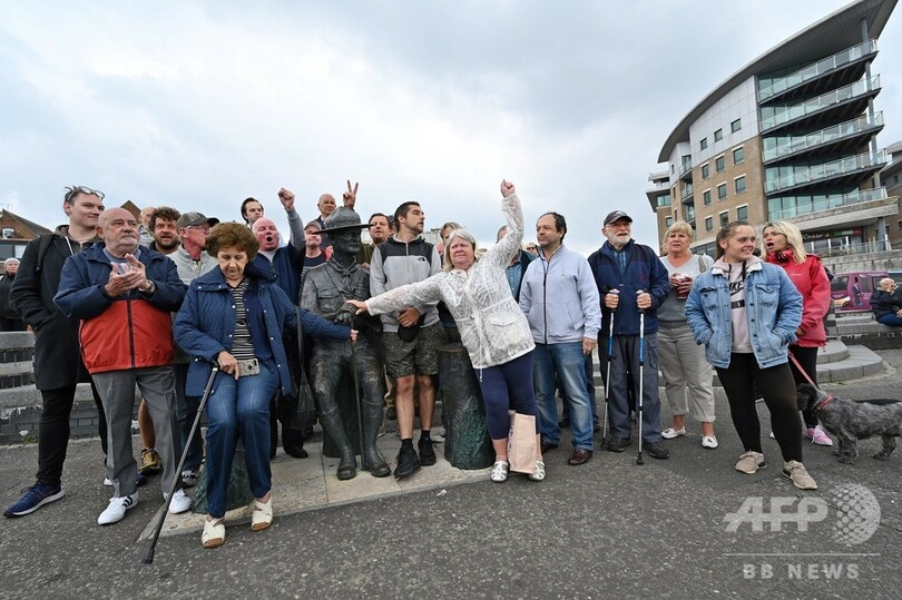 【6月12日 AFP】英イングランド南部の港町ボーンマス(Bournemouth)で11日、「スカウト運動」の創始者でナチス・ドイツ(Nazi)の支持者でもあったロバート・ベーデンパウエル(Robert Baden-Powell)卿の銅像を撤去する市の方針に抗議する人々が港にある銅像の元に集まり、卿の功績をたたえた。