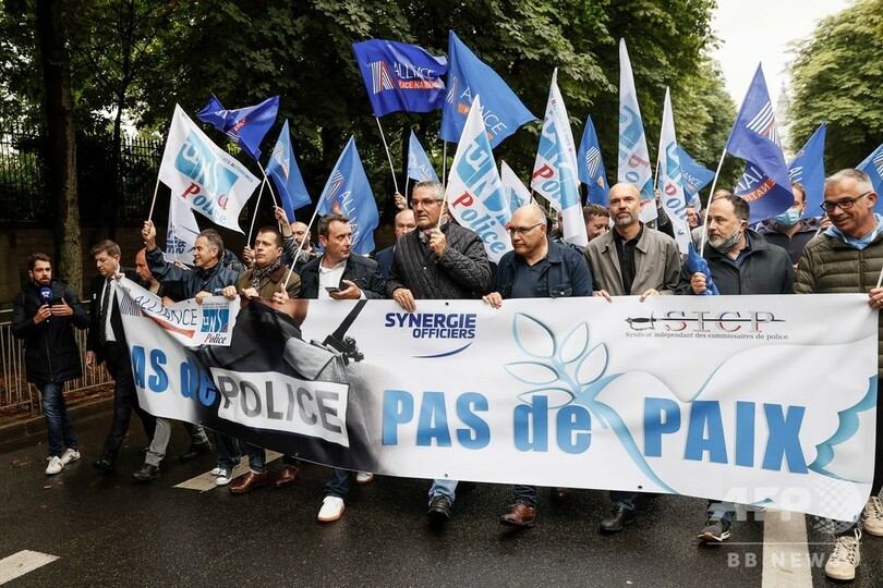 同日には首都パリのシャンゼリゼ(Champs-Elysees)通りに警察官数十人が出て、事前申請していないデモを決行。「警察がなければ平和もない」と書かれた横断幕を掲げて車道を歩き、交通を妨害した。