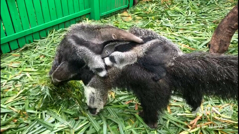 レアなオオアリクイの双子の赤ちゃんが一般公開 中国・広州
