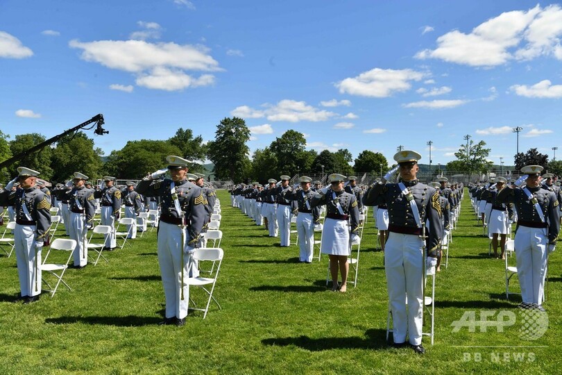 トランプ氏は、卒業する1107人の新任少尉を前に、「米国は人類史上、最も優れた国だ」と主張。卒業生らは明るい日差しの中、陸軍士官学校の練兵場で互いに十分な距離を保って腰掛けていた。