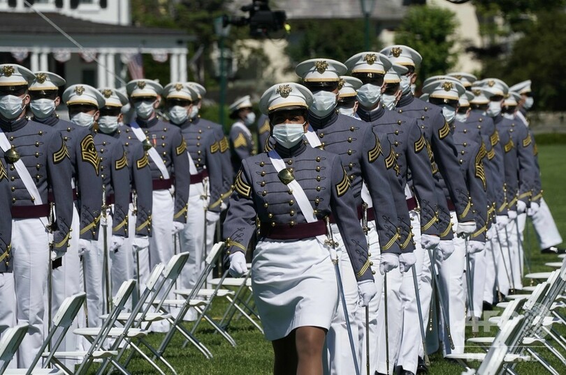 陸軍士官学校は、新型コロナウイルスの流行を受けて閉鎖され、学生らは自宅に戻っていた。しかし、トランプ氏は4月、卒業式に出席して演説すると突然発表。学生らは学校に呼び戻され、数週間にわたり新型コロナウイルス感染症(COVID-19)対策の隔離と検査を受けていた。