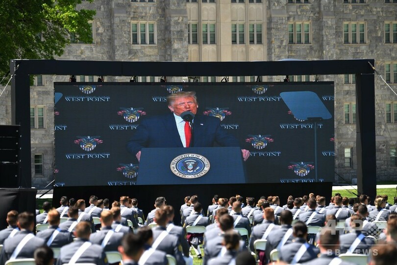 【6月14日 AFP】米国のドナルド・トランプ(Donald Trump)大統領は13日、米ニューヨーク州ウエストポイント(West Point)にある陸軍士官学校の卒業式で演説した。米兵の「素晴らしい勝利」を高く評価した一方、人種差別をめぐる最近の社会不安についてはほとんど触れなかった。